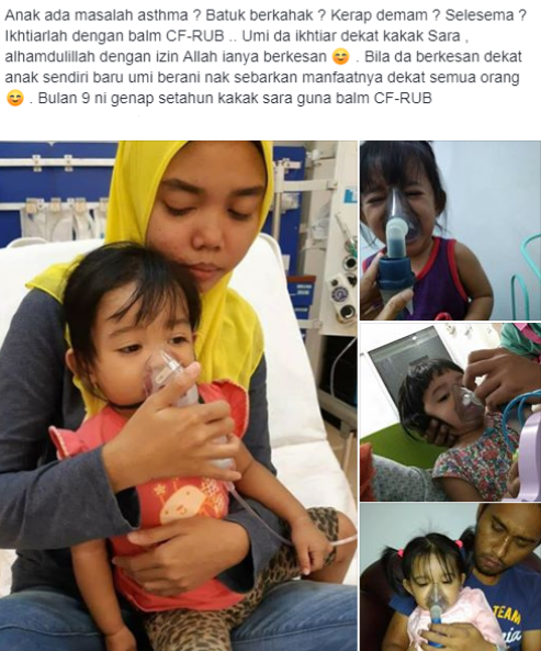Disini Qiqi share sama pengalaman ibu ayah yang ikhtiar masalah Bronkitis yang sudah melarat ke penyakit Asthma. Ibu ayah ini ikhtiarkan Cf Rub juga dalam sapuan harian dan juga sebelum simanja mereka kena 'neb'.